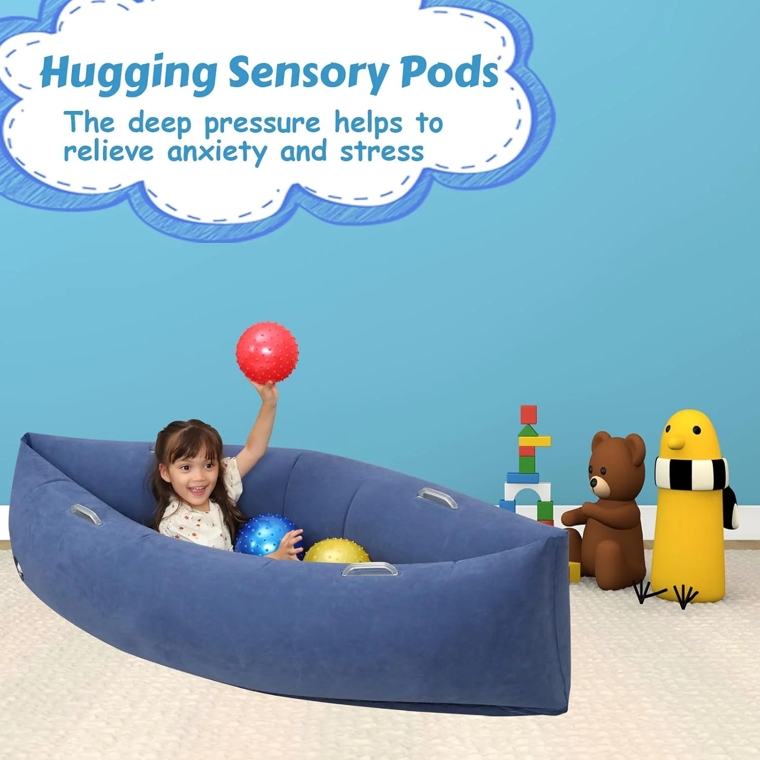 This smaller Comfy Peapod is perfect for younger children who crave soothing compression. Whether relaxing after school or winding down before bed, it's a cozy haven for calm. 💗
