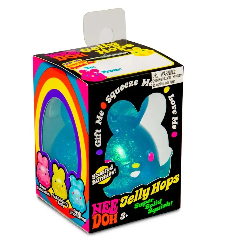 The NeeDoh Jelly Hops are fun, tactile, and scented fidget toys designed to provide hours of sensory play and stress relief. Each soft, squishy bunny-shaped toy is made from the signature NeeDoh compound, offering a satisfying squish and bounce while helping to improve hand strength, focus, and fine motor skills.