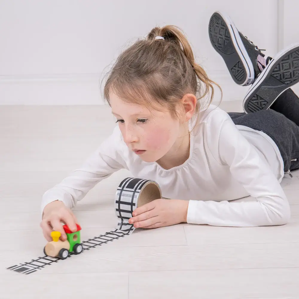 Includes 8 metres of track tape plus a wooden train engine so kids can start playing right away