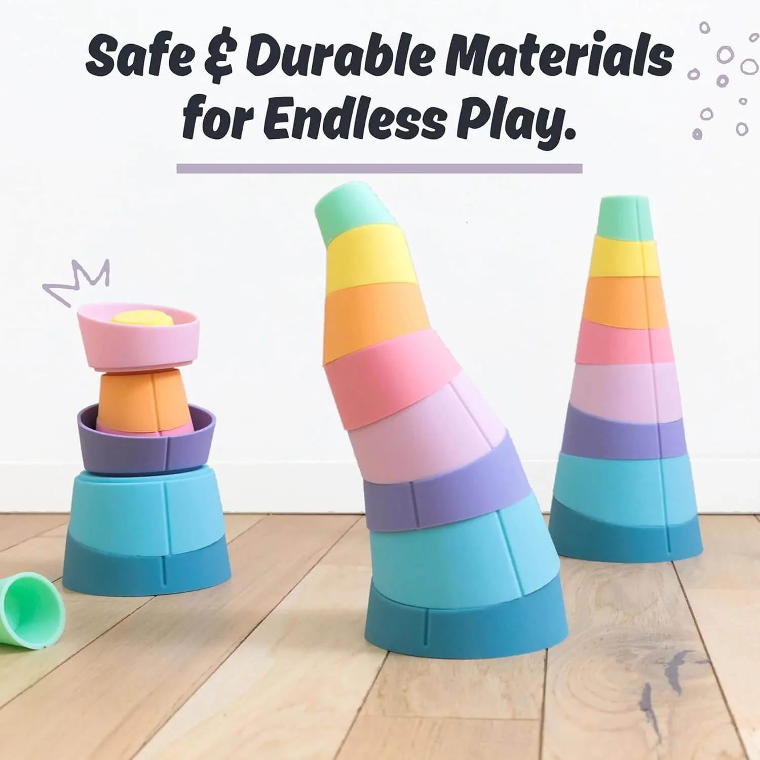 Crafted from non-toxic silicone and sustainably sourced wood, this stacking toy is made to withstand enthusiastic play and make tidy-up a breeze. Designed with simplicity in mind, Stak grows with your child — from initial stacking attempts to more complex play as confidence builds.